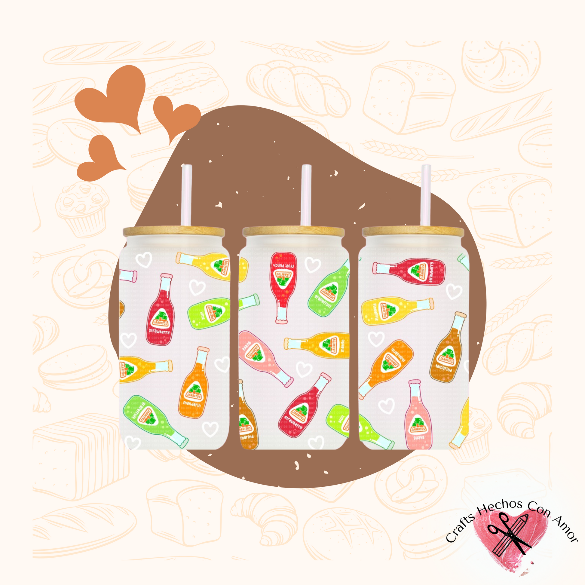Hola, soda fans! Ready to add a splash of fun and fizz to your day? Say hello to our fabulous Jarritos Glass Tumbler, designed to bring the vibrant flavors of your favorite Mexican sodas right to your hands! Featuring a playful pattern of colorful Jarritos bottles, these tumblers are perfect for anyone who loves a refreshing sip of fruity soda bliss.