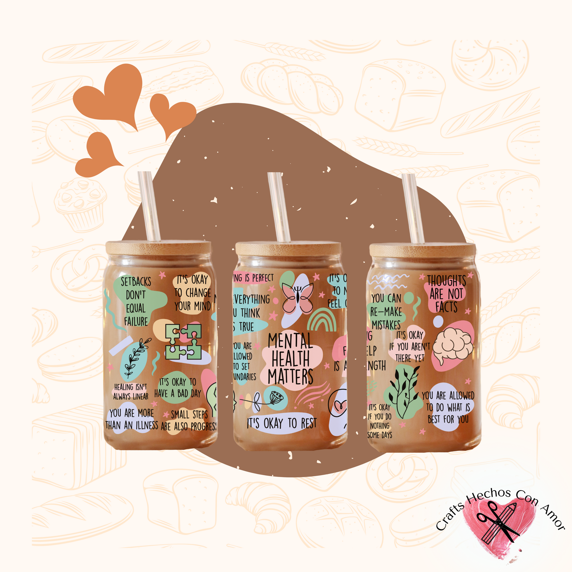 Take a break from the noise and sip your favorite beverage from this Mental Health Matters Tumbler! Featuring a glass can, bamboo lid, and bent glass straw, this tumbler is the perfect way to look out for your mental health and keep hydrated. Plus, it's a stylish reminder to always prioritize your well-being!