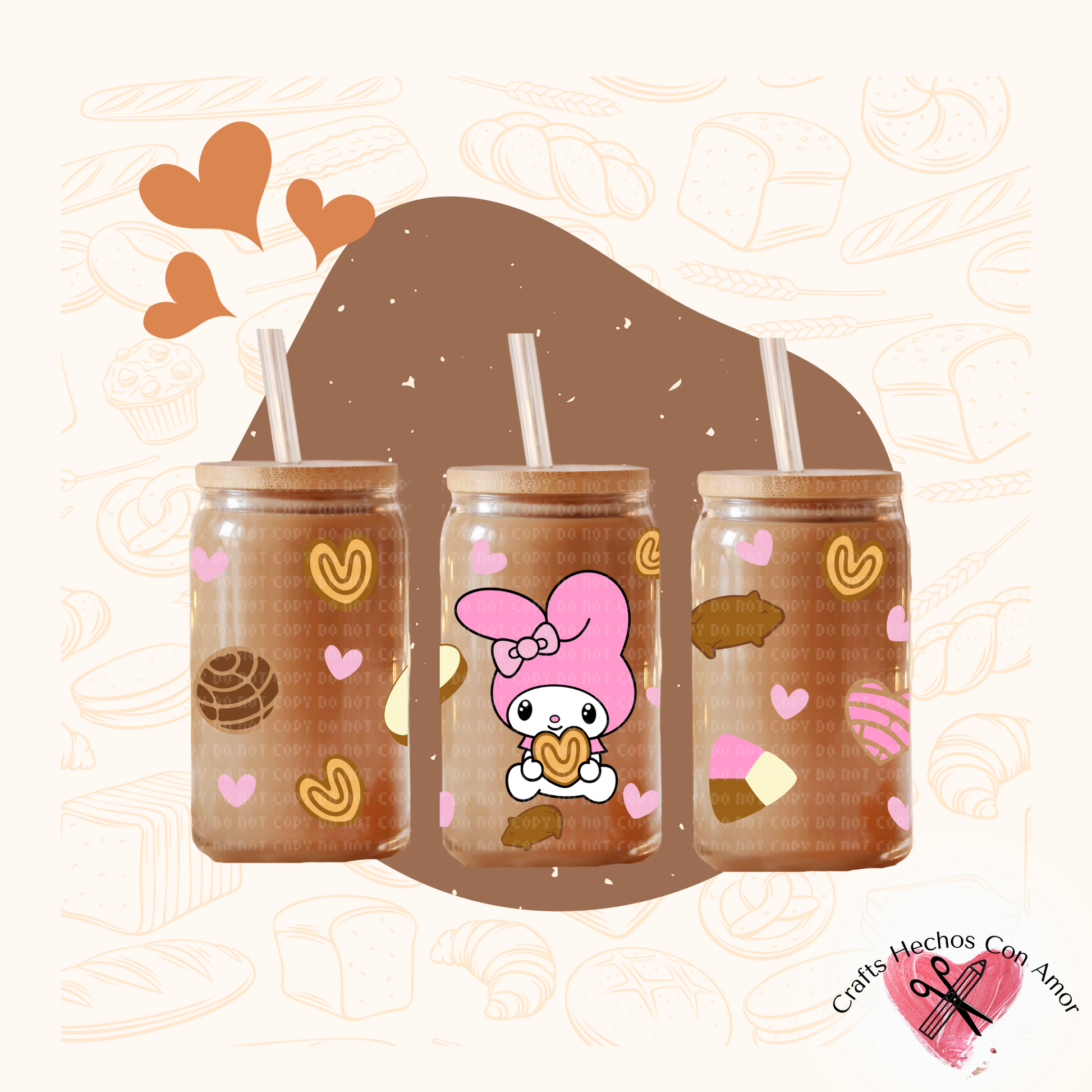 Sip your favorite bubbly beverage in style with the My Melody Pan Glass Tumbler! This handy cup, complete with a bent glass straw, bamboo lid, and oh-so-cute Kuromi with pan dulce design, has the makings for a great night in! All you need is a cozy blanket and a good movie, and you're good to go!